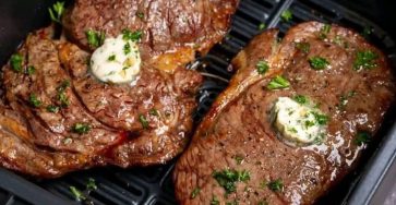 Ingredients: 2 ribeye or sirloin steaks (about 1 inch thick) 1 tbsp olive oil Salt and black pepper, to taste…