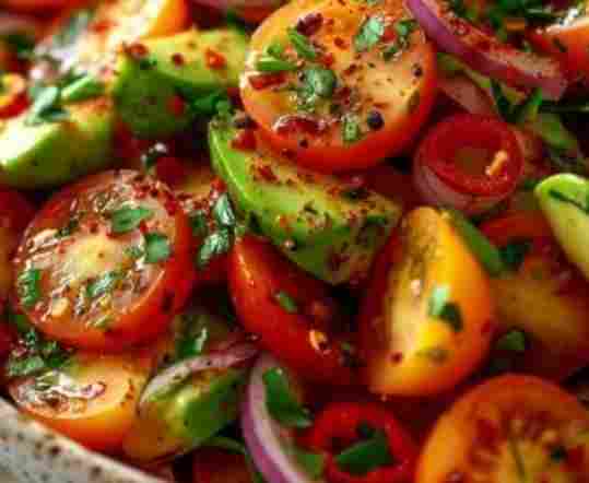 For the freshest and most vibrant taste, serve the avocado salad immediately. The crispness of the vegetables and the creaminess of the avocado are at their peak right after preparation. However, if time allows or if you prefer a more melded flavor profile, chill the salad for 10-15 minutes. This brief refrigeration period allows the dressing to permeate the avocado and other components, enhancing the overall taste experience.