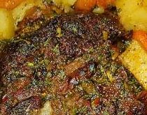 - After 2 hours, add the carrots, potatoes, and celery around the beef.