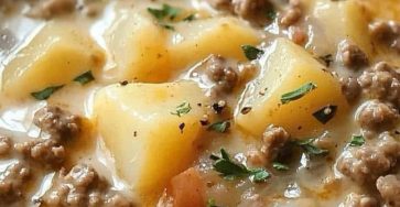 Here’s a simple and delicious Crockpot Creamy Potato & Hamburger Soup recipe! Ingredients: • 1 lb ground beef (hamburger) •…