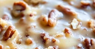 Instructions Initial Preparations: Batter Up: Pecan Inclusion: Into the Oven: Poke Time: Sauce Crafting: Finishing Touches: Cool & Slice: