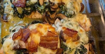 Smothered Chicken with Creamed Spinach Bacon And Mushrooms