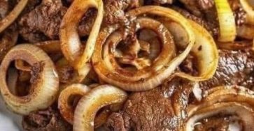 Thin slices of beef liver are cooked in olive oil, then served with caramelized onions. Make sure not to overcook…