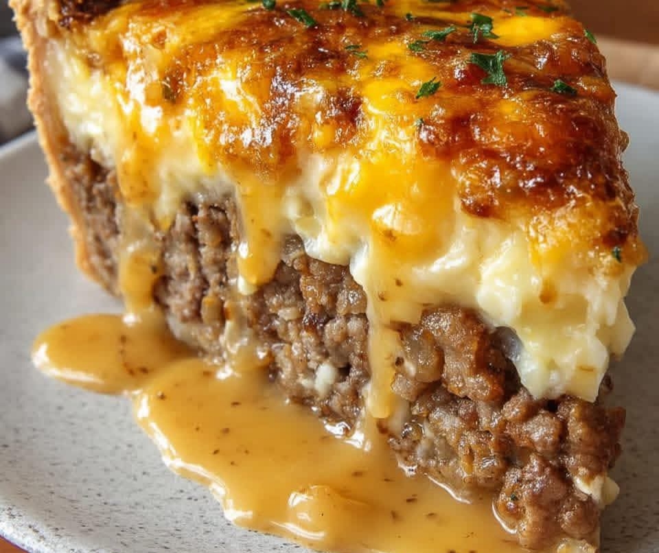 A comforting, hearty dish made with savory ground beef, creamy mashed potatoes, and melted cheese, finished with rich brown gravy.