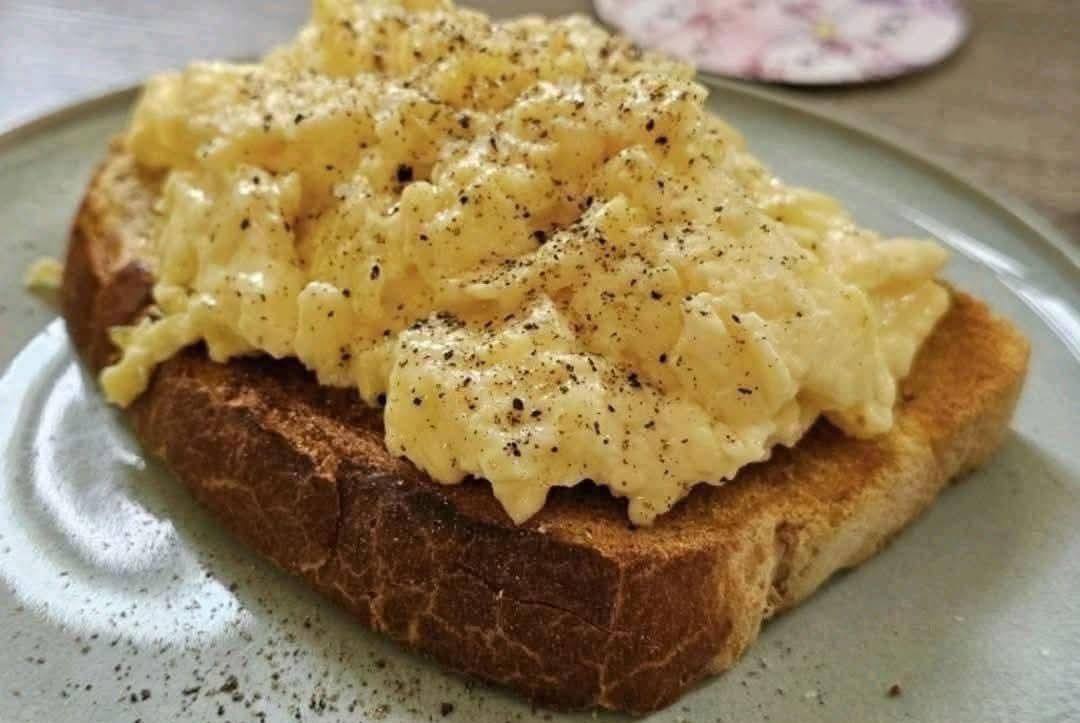 Spoon the egg mixture over one slice of toast.