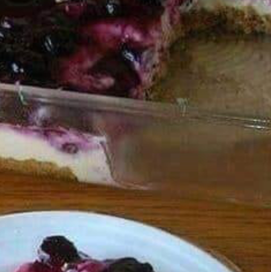 • Spread the blueberry topping over the chilled cheesecake.