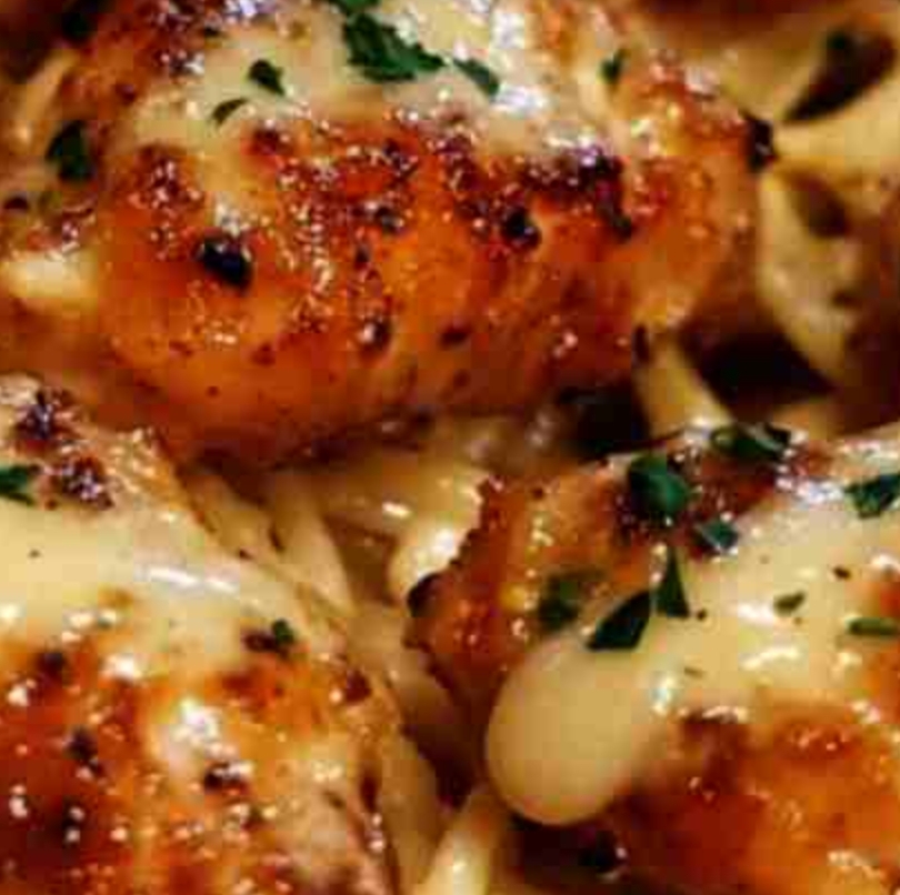 Ingredients:For the Chicken Bites:1 lb boneless, skinless chickenbreasts, cut into bite-sized pieces2 tablespoons olive oil4 tablespoons unsalted butter4 cloves garlic, mincedSalt and pepper to taste1 teaspoon Italian seasoningFresh parsley, chopped (for garnish)For the Creamy Parmesan Pasta:12 oz fettuccine or pasta of yourchoice2 tablespoons butter2 cloves garlic, minced1 cup heavy cream1 cup grated Parmesan cheese1/2 cup chicken brothSalt and pepper to tasteExtra garlic butter (optional, fordrizzling))Instructions:Cook the Pasta: Boil a large pot ofsalted water and cook the pastaaccording to package instructionsuntil al dente. Drain and set aside.Cook the Chicken Bites: In a largeskillet, heat olive oil over medium-high heat. Add the chicken bites,seasoning with salt, pepper, andItalian seasoning. Cook until goldenbrown and cooked through, about 6- 8 minutes. Remove the chicken from the skillet and set aside.Make the Garlic Butter Sauce: In thesame skillet, reduce the heat tomedium and add the butter. Oncemelted, add the minced garlic andsauté for about 30 seconds untilfragrant. Return the cooked chickento the skillet and toss to coat in thegarlic butter sauce.Prepare the Creamy ParmesanSauce: In a separate skillet, melt 2tablespoons of butter over mediumheat. Add the minced garlic andsauté for another 30 seconds. Stir inthe heavy cream and chicken broth,bringing the mixture to a gentlesimmer. Gradually whisk in thegrated Parmesan cheese untilsmooth, and season with salt and pepper to taste.Combine Pasta and Sauce: Toss thecooked pasta in the creamyParmesan sauce, ensuring it’s wellcoated.Serve: Plate the creamy Parmesanpasta and top with the garlic butterchicken bites. Drizzle with extragarlic butter if desired and garnishwith fresh parsleyPrep Time: 10 minutesCooking Time: 20 minutesTotal Time: 30 minutesEnjoy!