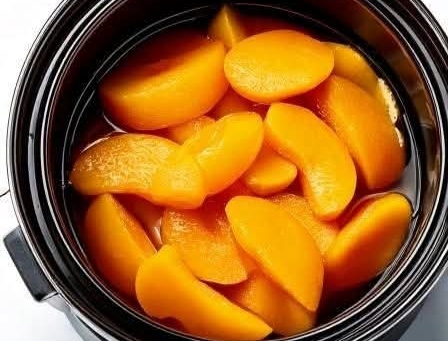 - Add the peach slices to the syrup and simmer for 5–7 minutes, until they soften slightly.