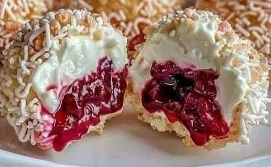 - Take your half-shells and add a spoon of cream and a small spoon of berry jam in the center.