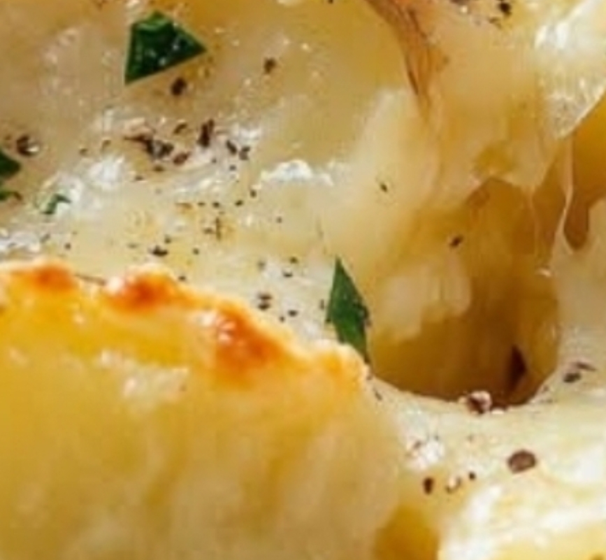 Place potatoes cut side down on top of the cheese layer. - Bake: