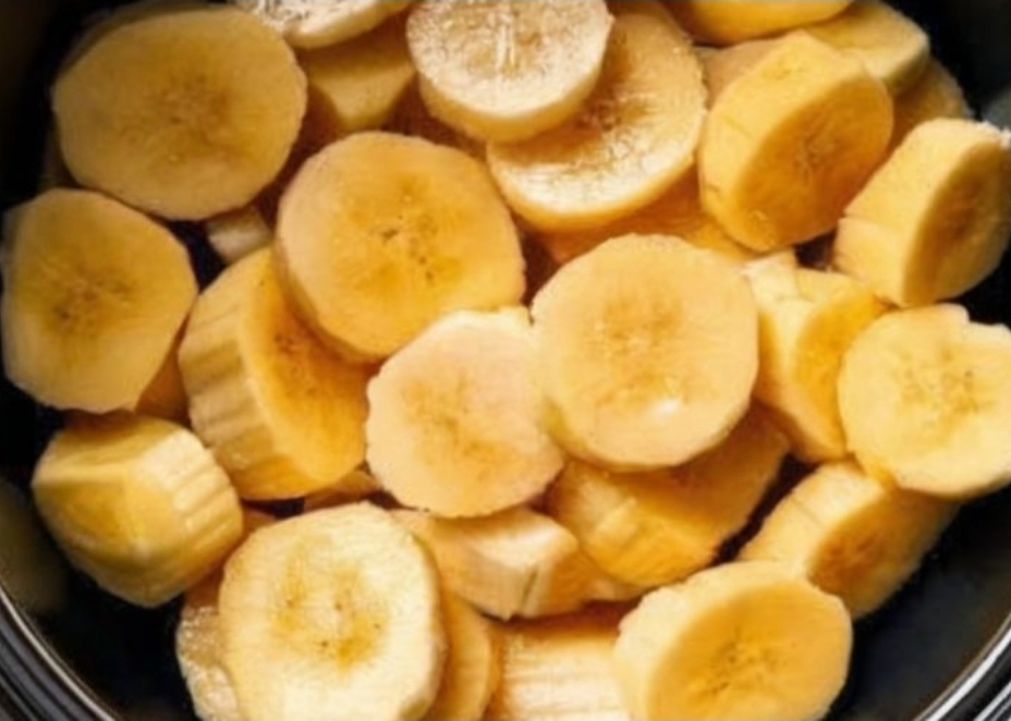 Grease your slow cooker. Add the banana slices, then pour the caramel-egg mixture over them. Add the optional rum for a deeper flavor. - Cook: