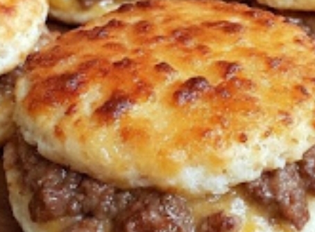 Spoon some cooked sausage mixture on each bottom biscuit.