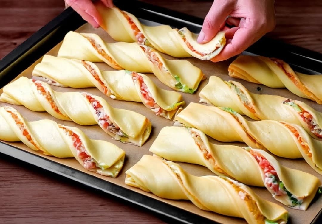 Roll the pastry tightly into a log (like a cinnamon roll).